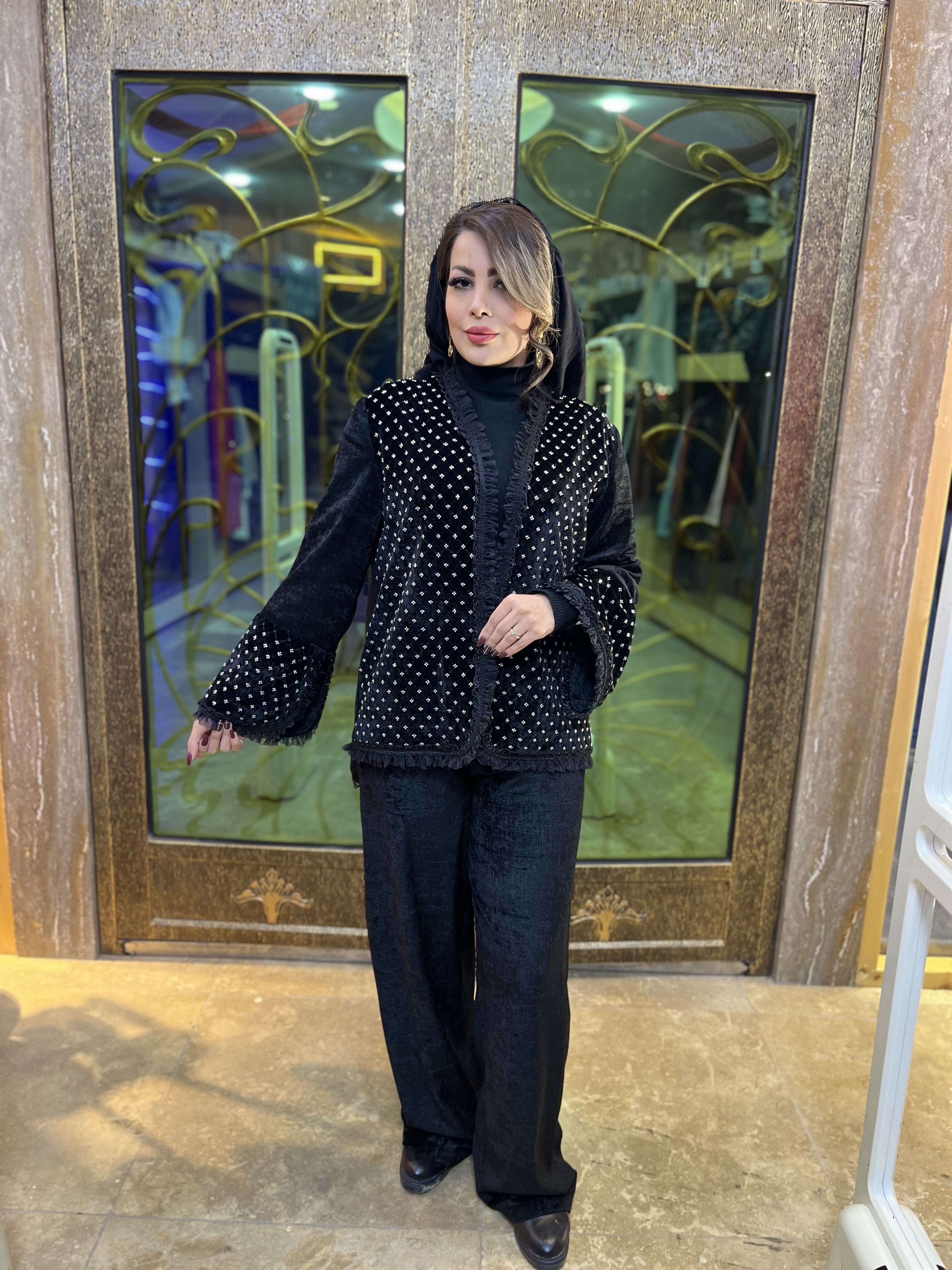 ست کت شلوار مخمل نگین دوزی نرمین، دارای دوسایز مناسب تا سایز ۴۸ می باشد. نگین های به کار رفته همه بصورت دوخت بود و تورهای ظریفی که لبه های لباس استفاده شده ظاهر به روز و مدرنی ایجاد کرده است. دوخت کار کاملا مزونی و تنخور عالی می باشد.