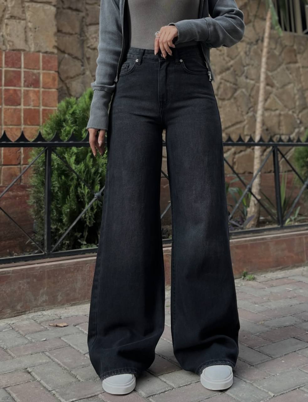 ناموجودشلوار جین فول بگ ذغالی پارچه ترک